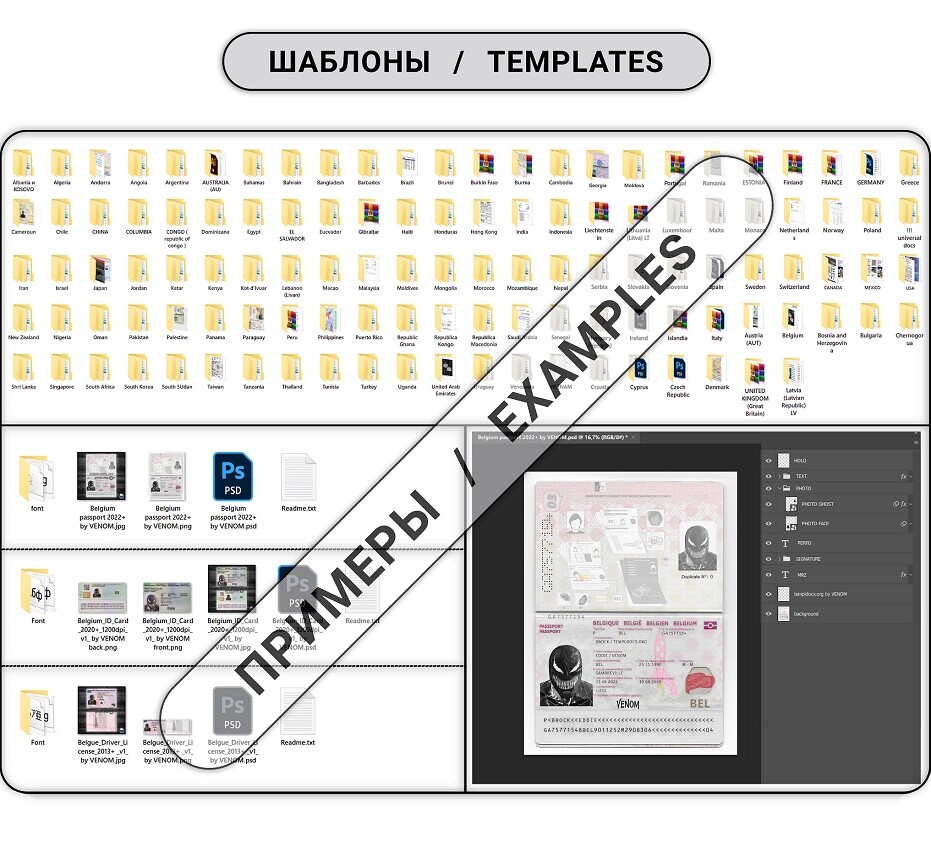 Дополнительно вы можете найти у меня в ассортименте разные учебные материалы (теория + практика), инструкции и пособия по отрисовке, документам, работе с шаблонами и фотошопом (Photoshop). Наборы фотодропов (в наличии более готовых 150+ комплектов, есть возможность сделать фотосессию с дропом под индивидуальный заказ). Фото/сканы реальных документов (eu/usa/asia) для различных целей (в наличии более 1000 комплектов).